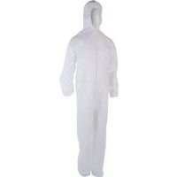 - Wegwerpoverall met elastische taille, pijpen en boorden, zodat deze veilig en praktisch kan worden gedragen.