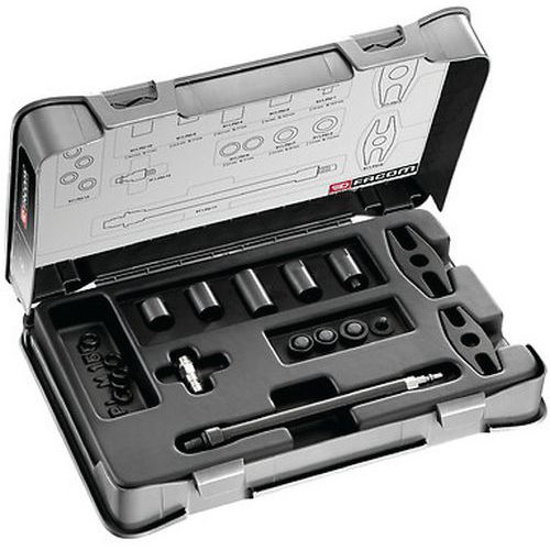 - Maakt demontage van schokdempers op de werkbank mogelijk