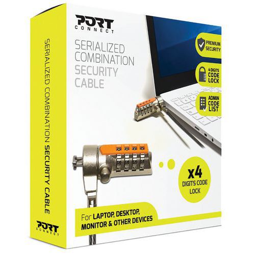 | Productnaam | Beveiligingskabel met geserialiseerd code, T-inkeping, Type slot: Code, Recyclebare verpakking: Ja - 100% |