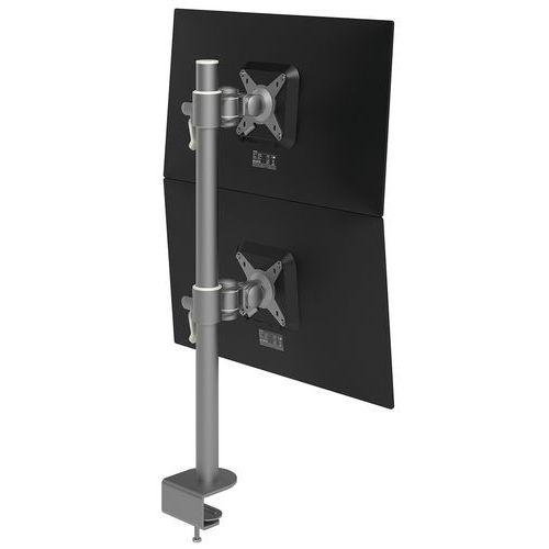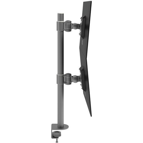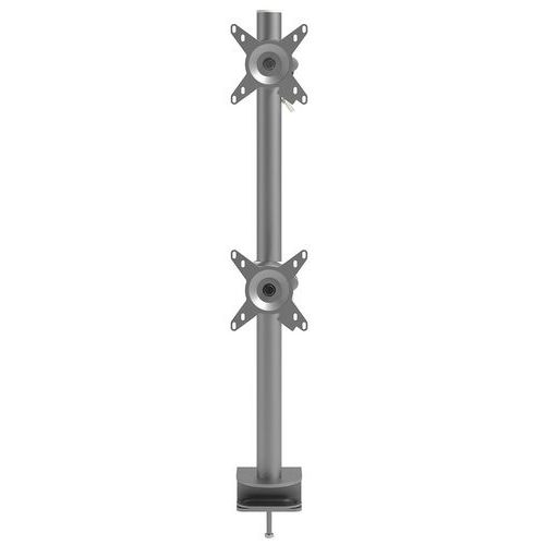 Dit product ziet er eenvoudig uit maar maakt het mogelijk twee schermen verticaal op uw werkplek te bevestigen en eenvoudig in de hoogte te verstellen dankzij de snelle regelhendel. Voorzien van een bevestiging om vast te schroeven op het bureau en een schroefklem.
