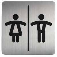 - Bord genderneutraal toilet, standaardformaat 15 x 15 cm, eenvoudig te installeren in alle soorten omgevingen. Gemaakt van hoogwaardig aluminium, schok- en corrosiebestendig. Stijlvolle grijze achtergrond. Met een zelfklevende achterkant, zodat het bord stevig op gladde oppervlakken kan worden bevestigd. Universeel en duidelijk herkenbaar pictogram voor genderneutraal toilet.