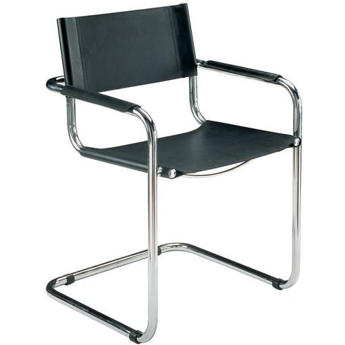 - Zeer robuuste en comfortabele stoel met verchroomd, buisvormig sledeonderstel.