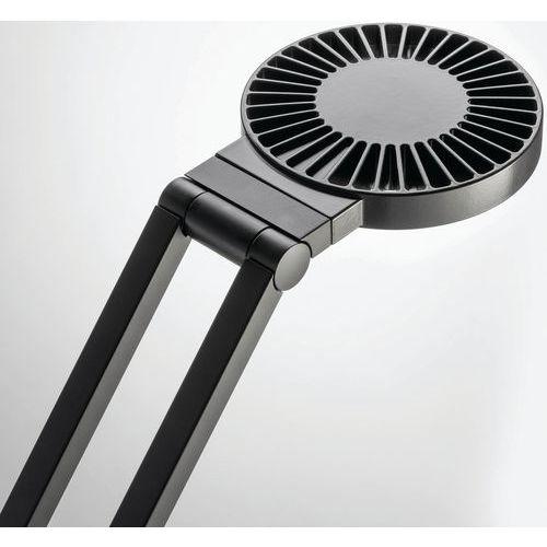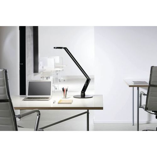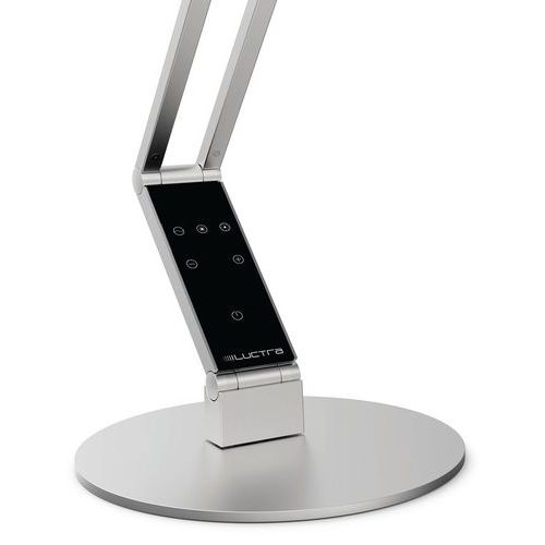 Bureaulamp met krachtige led-verlichting: biodynamische verlichting met gepatenteerd Vitacore®-systeem. Verhoogd visueel comfort met een verstelbaar lichtniveau van maximaal 1000 lux. 3 standen voor de kleurtemperatuur: 2700, 3600 en 6500 K. Kleur van warm, kalmerend wit tot opwekkend koud wit. Zelfblokkerende scharnieren: de ingestelde stand van de lamp blijft behouden. Lamp met ronde kop, aluminium behuizing en stalen basis. Led-lamp met connectiviteit op ronde sokkelhouder. Levensduur langer dan 50.000 uur. Symmetrische lichtverdeling. Degelijke Duitse kwaliteit. Energieklasse: A++. Lichtbundel: 680 lm.