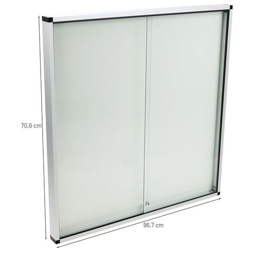 Robuuste, veilige en lichte binnenvitrine. Magnetisch oppervlak van gelakt staal voor de presentatie van uw documenten met magneten. Vergrendelbare, transparante schuifdeur voor een uitstekende zichtbaarheid van uw materiaal. Vitrine van versterkt glas van 5 mm dik voor extra veiligheid. Vergrendelbaar en geleverd met 2 sleutels.