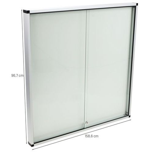 Robuuste, veilige en lichte binnenvitrine. Magnetisch oppervlak van gelakt staal voor de presentatie van uw documenten met magneten. Vergrendelbare, transparante schuifdeur voor een uitstekende zichtbaarheid van uw materiaal. Vitrine van versterkt glas van 5 mm dik voor extra veiligheid. Vergrendelbaar en geleverd met 2 sleutels.