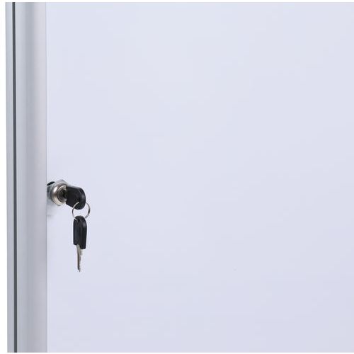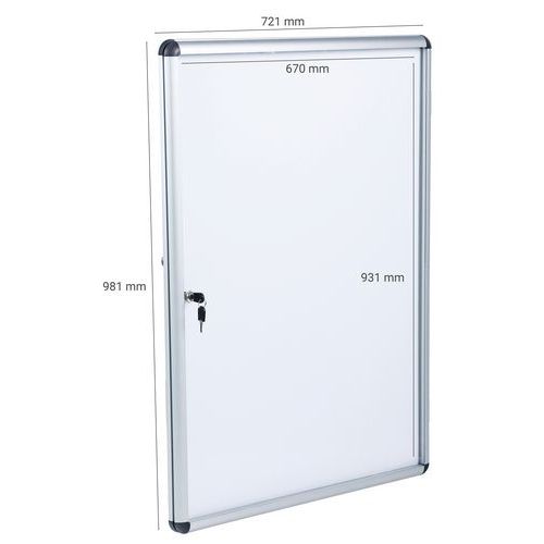 Robuuste, veilige en lichte binnenvitrine. Magnetisch oppervlak van gelakt staal voor de presentatie van uw documenten met magneten. Vergrendelbare, transparante draaideur voor een uitstekende zichtbaarheid van uw materiaal. Gemaakt in de EU Klantgarantie : 10 jaar