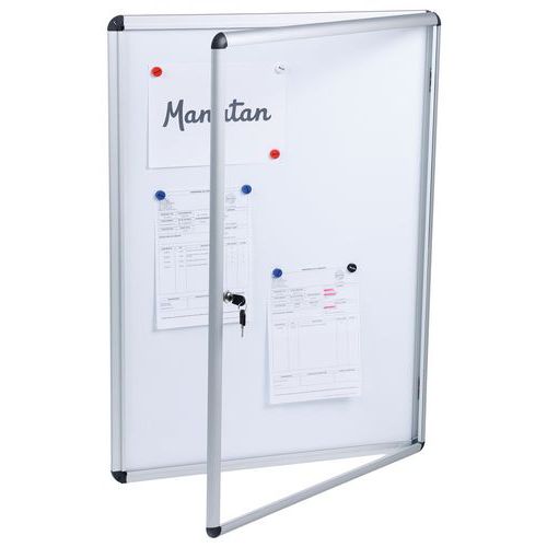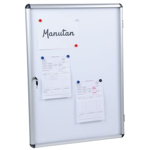 Robuuste, veilige en lichte binnenvitrine. Magnetisch oppervlak van gelakt staal voor de presentatie van uw documenten met magneten. Vergrendelbare, transparante draaideur voor een uitstekende zichtbaarheid van uw materiaal.