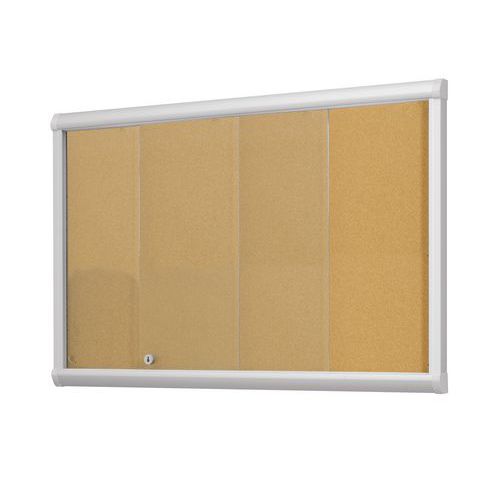 Binnenvitrine met schuifdeuren Leader - Achterwand van kurk - Deur van veiligheidsglas