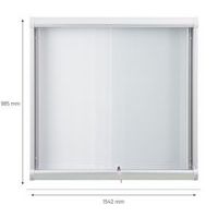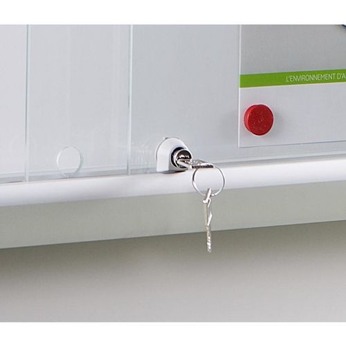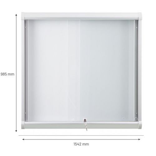 Binnenvitrine Naturas met schuifdeuren die nooit buiten de ruimte uitsteken en geen gevaar voor hinder, schok of blokkering vormen. Perfect voor drukbezochte plaatsen waar elke cm telt. Grote weergavecapaciteit (6 tot 27 vellen A4). De vitrine past zich aan alle behoeften aan: scholen, kantoren, ontvangsthallen, gezamenlijke ruimtes, werkplaatsen, enz. voor een beperkte weergave of een ruimere communicatie.