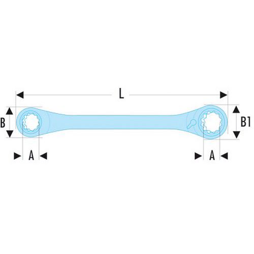 - Binnenzeskantsleutel, meerdere openingen: zeer veelzijdige sleutels = 4 afmetingen per sleutel.