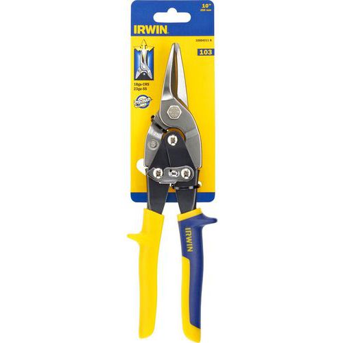 | Productnaam | Blikschaar 103, recht en grote bogen, Snijkanten lengte: 3.34 mm, Lengte: 250 cm, Snijvermogen staal: 0.84 mm |
