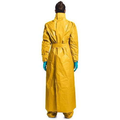 Bloes met lange mouwen Tychem 2000C die de benen bedekt tot aan de kuiten.