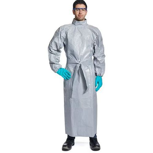Bloes met lange mouwen Tychem 6000F die de benen bedekt tot aan de kuiten.