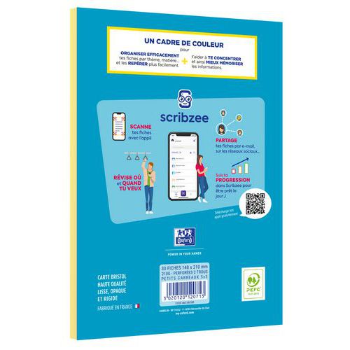 Met een gekleurd kader kunt u uw kaarten doeltreffend organiseren per thema, materiaal. Dankzij het contrast met de witte achtergrond blijft de leesbaarheid van uw aantekeningen behouden. Deze kaarten zijn verkrijgbaar in 4 kleuren met kader. De kaft van het blok bristolkaarten is omhullend en beschermt uw kaarten. Met dit formaat notitieblok kunt u deze eenvoudig in uw zak vervoeren zonder ze te beschadigen. De OXFORD bristolkaarten van 210 g zijn bestendig, van hoge kwaliteit, glad en ondoorzichtig voor een groter schrijfgemak, van stevig karton voor eenvoudig opbergen en lange levensduur. Formaat A6, eenvoudig om overal mee naar toe te nemen.