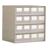 Blok met ladebakken, Totale inhoud: 1.5 L, Aantal bakken: 16, Bak kleur: Transparant, Totale hoogte: 395 mm