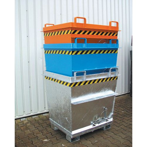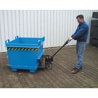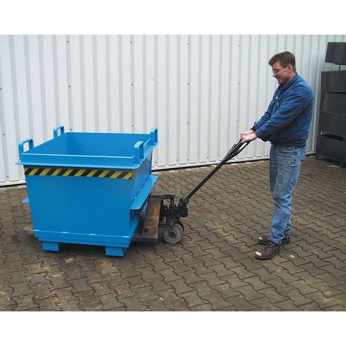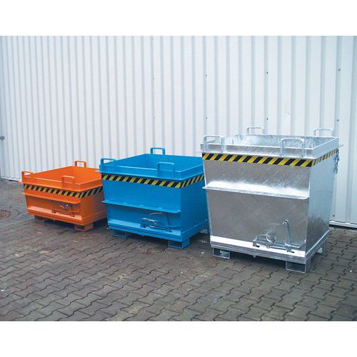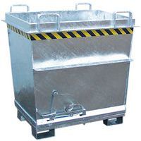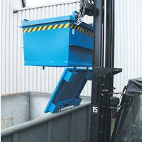 Blauwe bodemklepcontainer Bauer. Stabiele constructie met verstevigd profiel voor een langere levensduur. Eenvoudig te verplaatsen met een heftruck of hijskraan. Handige opening aan de onderzijde met koord. In één keer legen dankzij de openslaande bodem.
