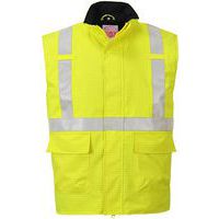 Bodywarmer met hoge zichtbaarheid Bizflame, antistatisch, multifunctioneel, geel. Optimale bescherming en comfort. Waterdichte, vlamvertragende stof. Stevige, vlamvertragende katoenvoering voor meer warmte en comfort.