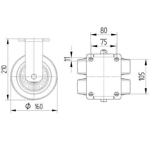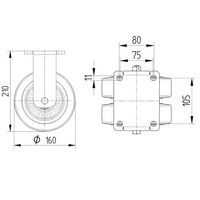 bokwiel, alu.stat.draagverm 1200-1500 kg, Max. belasting: 1400 kg, Ø: 160 mm