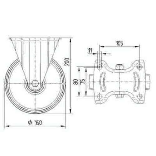 bokwiel, ind. Al., Max. belasting: 700 kg, Ø: 160 mm, Wiel/Zwenkwielen: Bokwiel/zwenkwiel