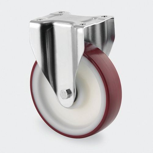 - Wielkern van polyamide met loopvlak van gespoten polyurethaan, wielnaaf op precisiekogellagers