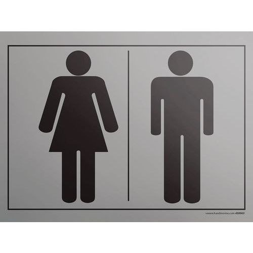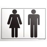 Dit gegraveerde bord voor mannen en vrouwen geeft het publiek duidelijk visueel aan waar de toiletten zijn.