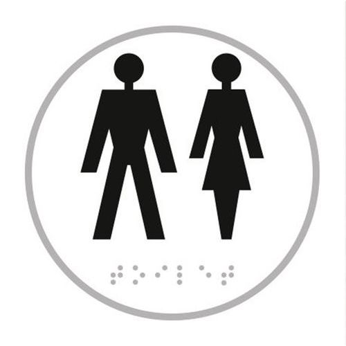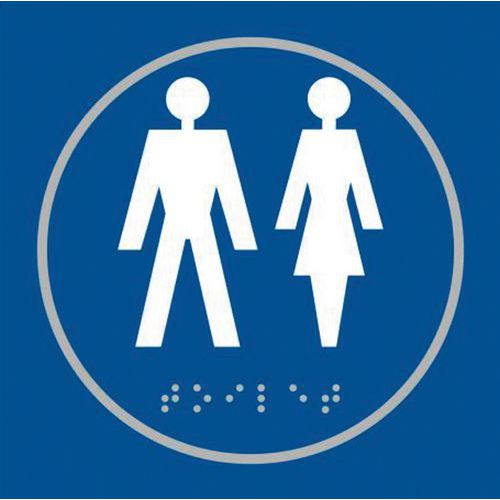 Dit bordje man/vrouw heeft verhoogde pictogrammen om mindervalide te helpen die geen braille kunnen lezen.
