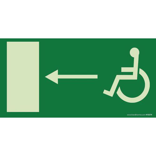 - Bord naar nooduitgang links Foto-luminescent + picto gehandicapten