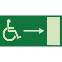 Bewegwijzering - Nooduitgang - rechts. PVC en vinyl fotoluminescentie. Deze bewegwijzering is van essentieel belang voor alle soorten etablissementen en maakt het mogelijk mensen met een beperkte mobiliteit in geval van gevaar naar een nooduitgang aan de rechterkant te leiden. Verkrijgbaar in verschillende maten, in PVC en in fotoluminescent vinyl.