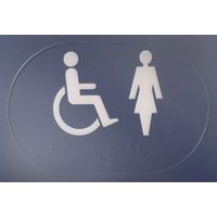 | Productnaam | Bord picto voor rolstoelgebruiker + vrouw in relief en in braille, Zelfklevend: ja, Materiaal: PVC |