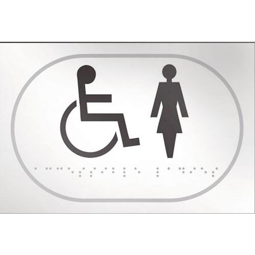 Bord picto voor rolstoelgebruiker + vrouw in relief en in braille