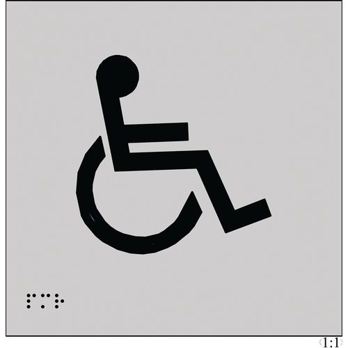 Verhoogde brailleborden voor toiletten voor mindervaliden. Modern. Esthetisch. Plaat in reliëf en braille. Verkrijgbaar in twee formaten. Bord in reliëf en braille voor mindervailiden toiletten. Gemaakt in de EU Toegankelijk voor mindervaliden