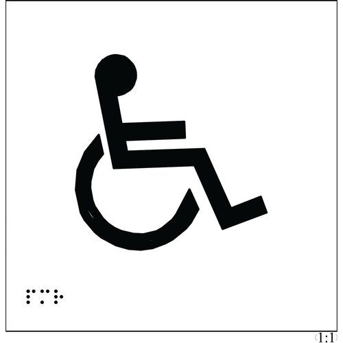 Verhoogde brailleborden voor toiletten voor mindervaliden. Modern. Esthetisch. Plaat in reliëf en braille. Verkrijgbaar in twee formaten. Bord in reliëf en braille voor mindervailiden toiletten.