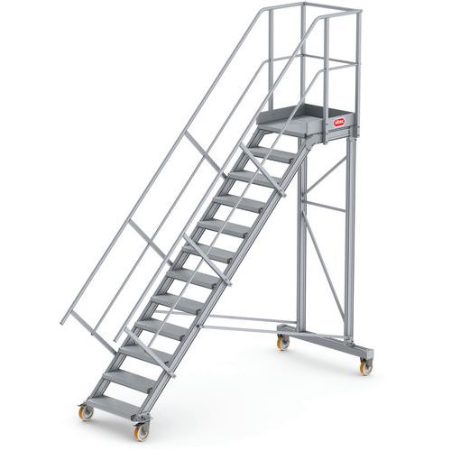 - Dit industriële platform is ideaal als trap voor magazijnen of voor onderhoudswerkzaamheden aan een machine of productielijn.