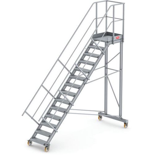 - Dit industriële platform is ideaal als trap voor magazijnen of voor onderhoudswerkzaamheden aan een machine of productielijn.