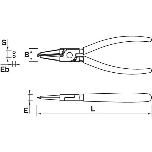 Borgringtang voor binnenspannende borgringen rechte bekken