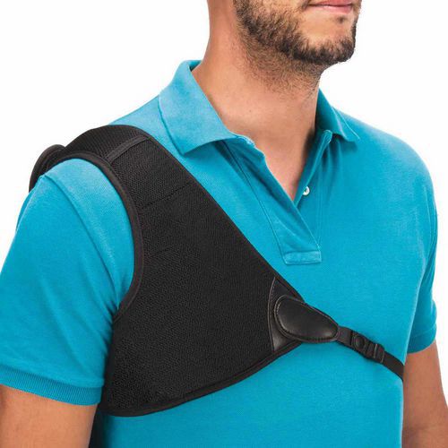 - Linkshandige borstbeschermer ontworpen om wrijving tussen het lichaam en de pees te voorkomen.