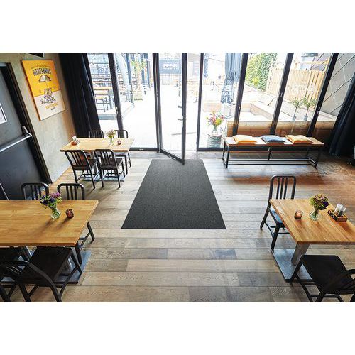 Ultra-schrapend velours borstelmat van gerecycled polyamide Econyl ®. Hoogte vezels 6 mm, hoogte rug 2 mm PVC zonder ftalaat. Eenvoudig te onderhouden: stofzuiger, injectie-extractiesysteem, hogedrukreiniger. Geschikt voor plaatsen met intensief verkeer, geschikt voor de doorgang van personen met verminderde mobiliteit. Gemaakt in Europa.