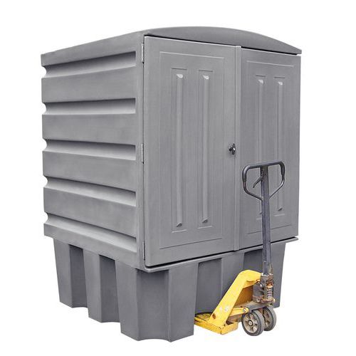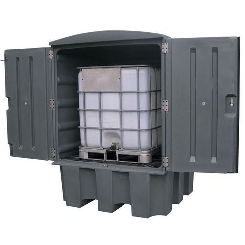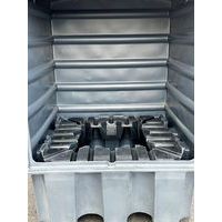 | Productnaam | Box van HDPE 1100 l, Inhoud opvangbak: 1100 L, Vermogen (aantal vaten): 4 |