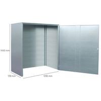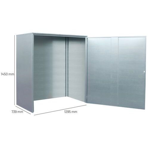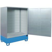 | Productnaam | Box voor opvangbak, Vermogen (aantal vaten): 2, Coating: Gegalvaniseerd, Type: Box met vergrendelbare deur |
