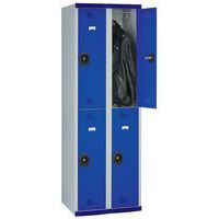 - Garderobekast op sokkel met metalen l-deuren elke kolom bevat 2 volledige garderobekasten met hangkast en opbergvak. scharnierende vleugeldeuren met een opening van 180°. sterk beveiligde en stille 2-puntssluiting (2 sleutels meegeleverd). ventilatie aan de voorkant en boorgaten voor zij-aan-zijplaatsing.