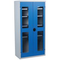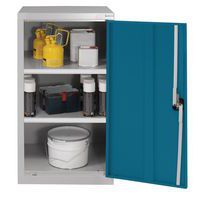 - Voorzien van 4 legborden per 25 mm verstelbaar door middel van stalen klampen en 2 draaideuren met verzonken handgreepslot (2 sleutels meegeleverd).