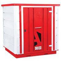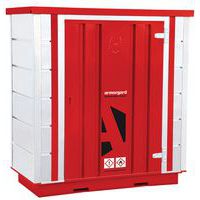 - Modulaire en veilige opslagcontainer voor brandstofvaten en andere gevaarlijke stoffen.