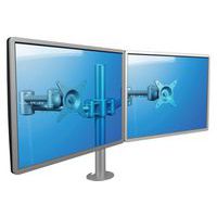 - Dit product ziet er eenvoudig uit maar maakt het mogelijk twee schermen verticaal op uw werkplek te bevestigen en eenvoudig in de hoogte te verstellen dankzij de snelle regelhendel. Voorzien van een bevestiging om vast te schroeven op het bureau en een schroefklem.