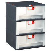 - Stevig ladeblok met 3 groene of doorzichtige laden voorzien van etikethouders.