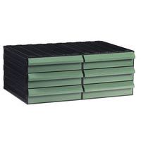 - Stevig ladeblok met 12 groene of doorzichtige laden voorzien van etikethouders.