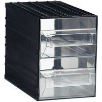 - Stevig ladeblok met 4 groene of doorzichtige laden voorzien van etikethouders.