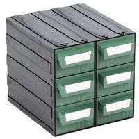 - Stevig ladeblok met 6 groene of doorzichtige laden voorzien van etikethouders.