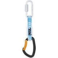 - Elke quickdraw is voorzien van een stalen karabiner met gebogen vinger en Key Lock-opening, diefstalbescherming, geluidsdemping en gestikte webbing van 12 cm.