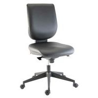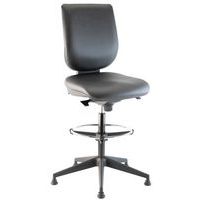 - Hoge werkplaatsstoel met middelhoge rugleuning en permanent contact, draaiknop voor blokkeren op verschillende standen.