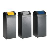 - Brandwerende afvalbak voor afvalscheiding, van gegalvaniseerd plaatstaal met een gestructureerde bekleding in de kleur zilver of antiek zilver.